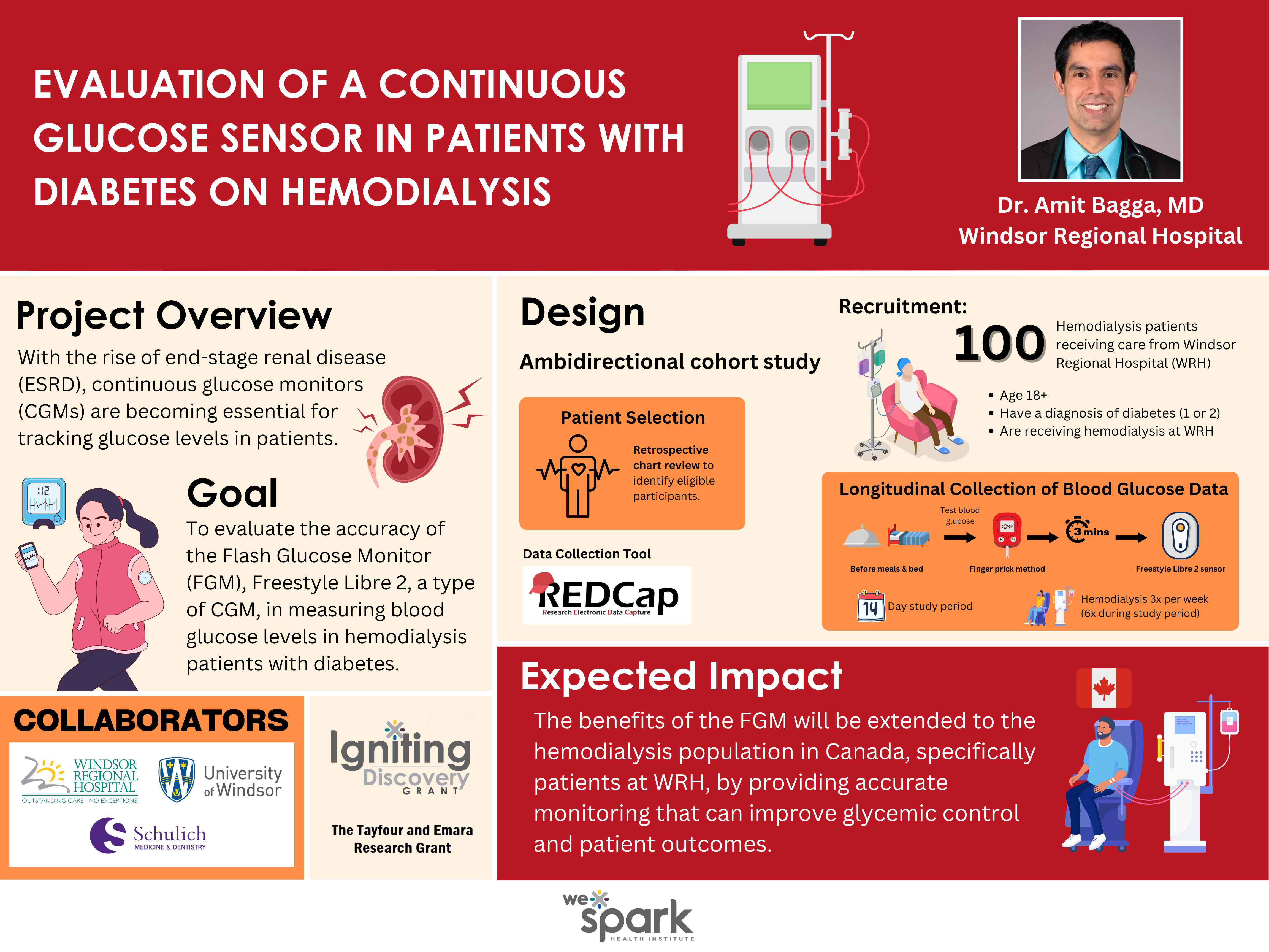 Benefits of FGMs will be extended to the hemodialysis population in Canada, specifically patients at Windsor Regional Hospital in Windsor, Ontario, by shedding light on its accuracy and ability to guide glycemic control.